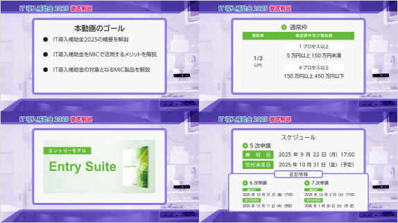 本動画をご覧いただき、IT導入補助金2025の活用にお役立てください。